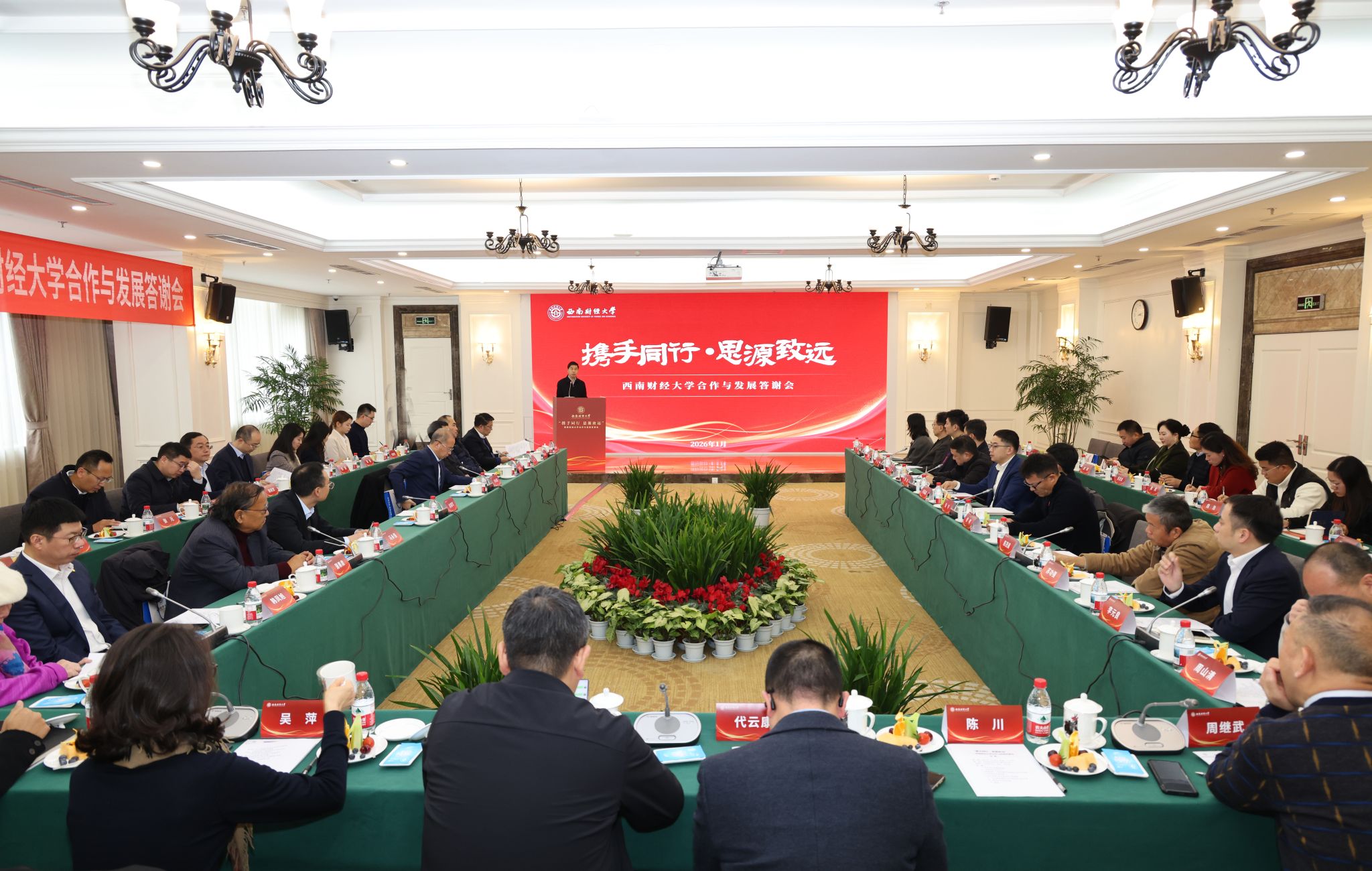 1月20日,学校“携手同行 思源致远”合作与发展答谢会在光华校区举行。学校特邀长期鼎力支持西财发展的校友代表与合作单位代表齐聚一堂,畅叙情谊、共话发展。党委书记赵建军,党委副书记、校长李永强,党委常委、副校长马永强出席会议,李永强主持会议。