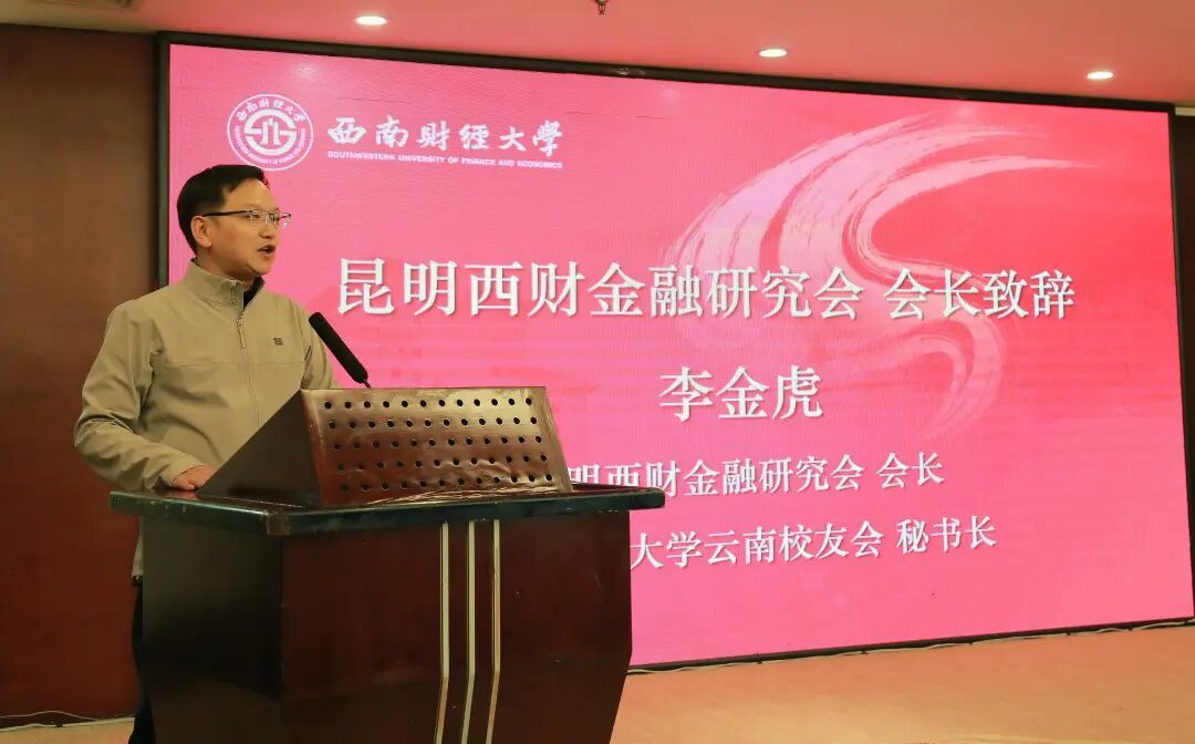 昆明西财金融研究会会长、云南校友会秘书长李金虎代表研究会致辞,分享了研究会在推动产学研融合、服务区域金融发展等方面的实践与思考。