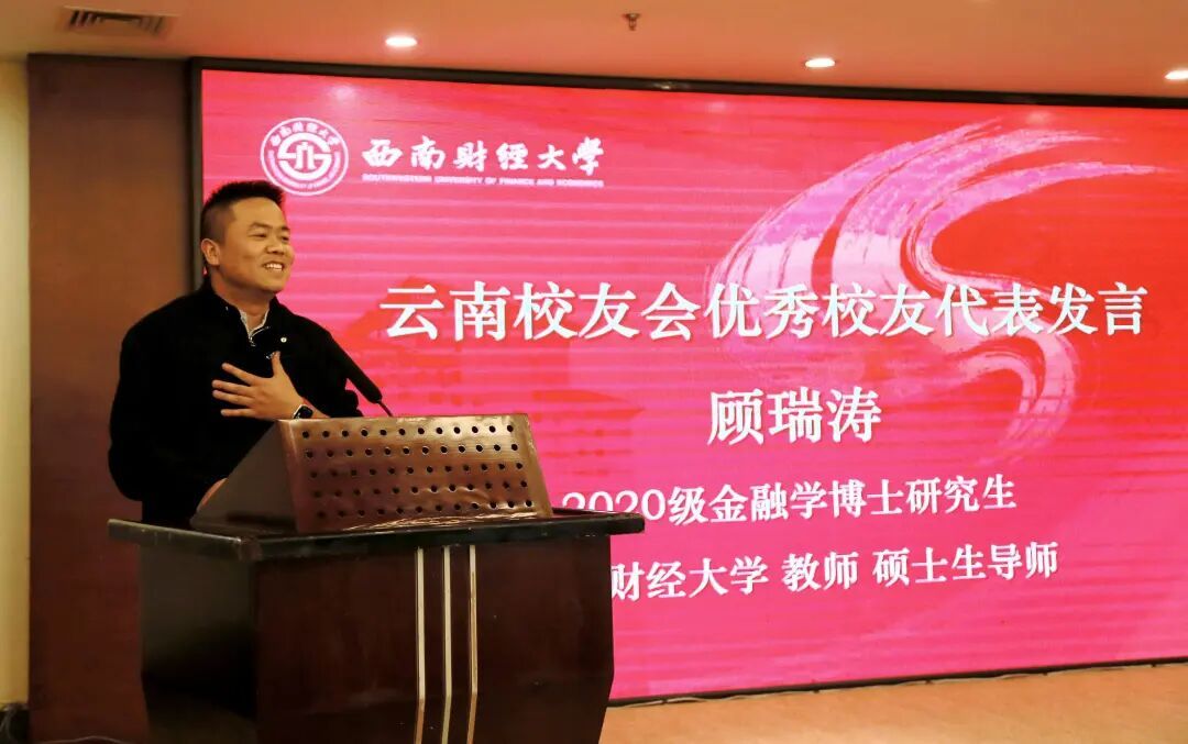 活动中,西南财经大学2020级金融学博士顾瑞涛作为优秀青年校友代表发言,分享了立足金融教学与研究、服务地方实体经济的实践感悟。昆明西财金融研究会副理事长孟志强、会员单位代表王卫分别介绍了协同创新的探索成果。与会嘉宾还围绕区域金融高质量发展进行了交流分享。