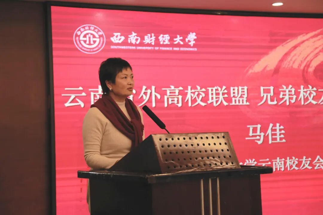 上海财经大学云南校友会会长马佳代表兄弟高校校友会致辞,高度评价西财云南校友会的凝聚力与活力,并表达了深化校际合作、共促发展的良好愿望。