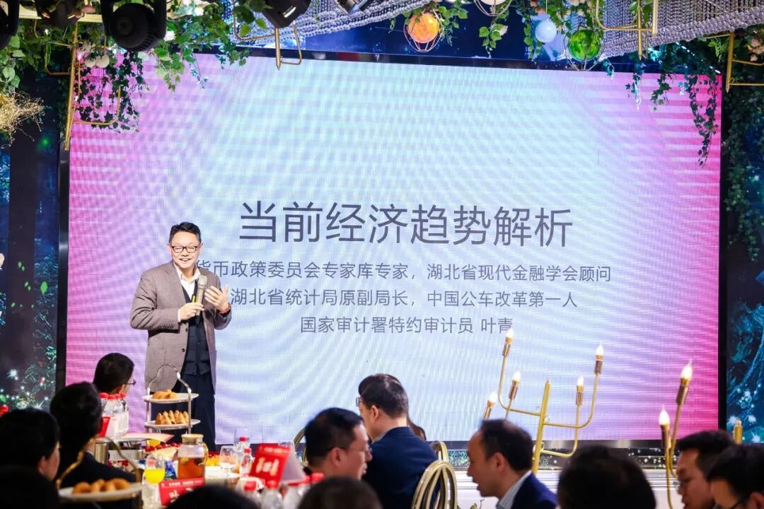 张本仙代表武汉市校友经济促进会送上祝贺,期盼马年携手共赢。叶青作《当前经济趋势解析》专题分享,剖析中国未来经济与消费趋势。